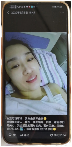 孫大夫的病情逐漸康復(fù),院領(lǐng)導(dǎo)關(guān)心她的病情,勸她適當(dāng)休息時,她詼諧地說:我會一如既往地努力工作的,不拋棄、不放棄是我的座右銘。希望在我的影響下,全體同志的共同努力下,腫瘤醫(yī)院的未來一定是區(qū)域內(nèi)最好的??漆t(yī)院。